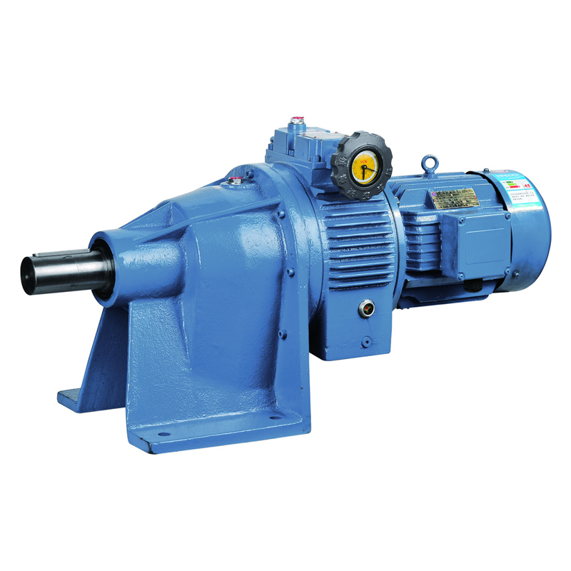 本機由行星機構(gòu)、調速控製機構、加壓裝(zhuāng)置及電機等組成。行星(xīng)機構由太陽輪、壓盤、固定平麵(miàn)凸輪、調速凸輪、定環、行星輪及轉臂(行星(xīng)架)組成。動力源由電機輸入帶動太陽(yáng)輪(lún),由於定環及調速凸輪不動,因此行星輪在自轉的同時並做公轉運(yùn)動,通過滑塊軸承帶動轉臂及輸出軸(zhóu)運轉。加壓裝置是由一組碟簧組成(chéng),它對壓盤、行(háng)星輪、太陽輪施加軸向壓力,使其(qí)轉動時產生磨擦,通過專用牽(qiān)引油產生的牽引力來傳遞動力。調速控製機構的工作過程是當轉動手(shǒu)輪時,通過調速絲杆、調節螺母、調節柄帶動調速凸輪改變其角向位置,並通過固定平麵凸輪曲線麵使調速凸輪產生軸向移動,從而改變調(diào)速凸輪和定環的(de)間隙,行星輪就能作徑向移動,從而改變了傳(chuán)動半徑,最終實現了穩(wěn)定的無級變速。